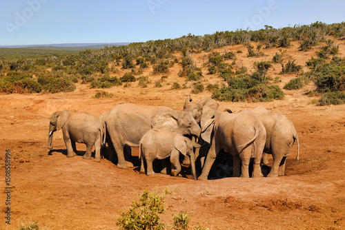 © raffaellagalvani, Fototapeta premium group of elephants near a water hole in Addo national park