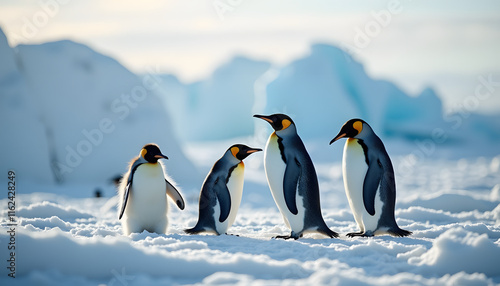 © Nataly, Fototapeta premium Group of emperor penguins standing on snow in icy environment