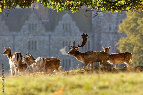 © bridgephotography, Obraz premium Group of fallow deer in front of a stately home