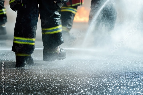 © Ева Поликарпова, Obraz premium Group of firefighters standing next to a fire hydrant, ready for action