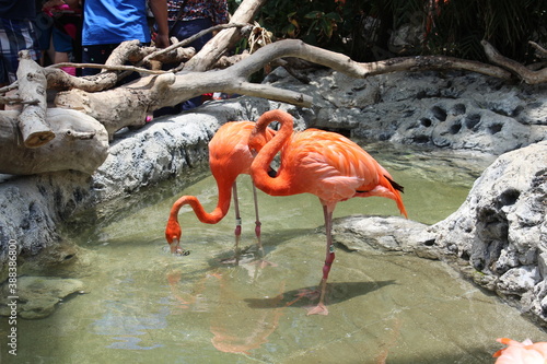 © Audrey, Fototapeta premium group of flamingos