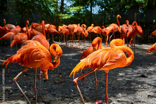 Obraz premium Group of flamingos in the zoo