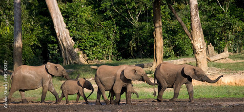 Obraz premium Group of forest elephants in the forest edge. Republic of Congo....