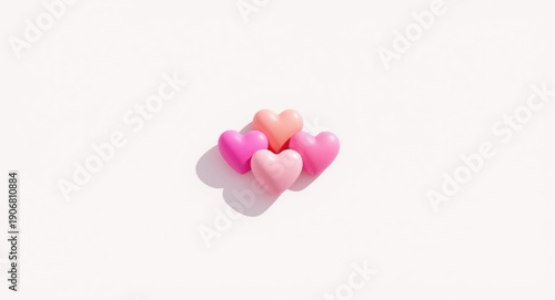 © AugmentArt, Fototapeta premium Group of four pink heart symbols in gradient hues isolated on white for creative illustration work