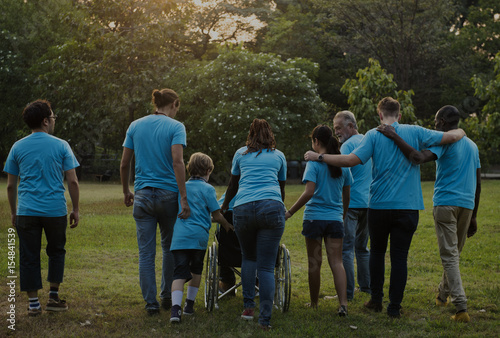 © Rawpixel.com, Obraz premium Group of friends supprt and walking together in rear view