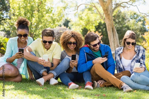 Fototapeta premium Group of friends using mobile phone