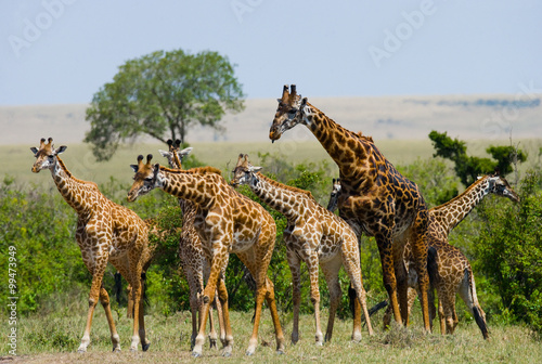 Obraz premium Group of giraffes in the savanna. Kenya. Tanzania. East Africa. An excellent...