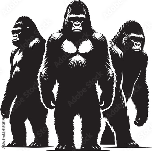© Md Hasan, Fototapeta premium Group of Gorilla Silhouette isolated on white background Minimalist gorilla vector