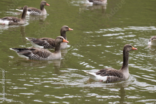 © Robirensi, Fototapeta premium group of grey goose swimming in water