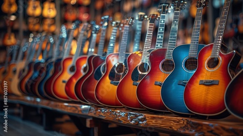 Naklejka premium Group Of Guitars, Diverse And Colorful, High Quality Background