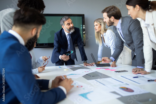 © NDABCREATIVITY, Fototapeta premium Group of happy business people working in a meeting at office