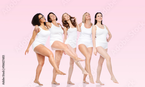 © Syda Productions, Obraz premium group of happy different women in white underwear