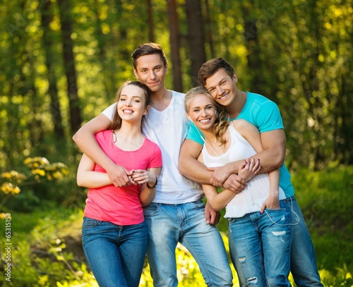 © Nejron Photo, Fototapeta premium Group of happy friends outdoors on sunny day