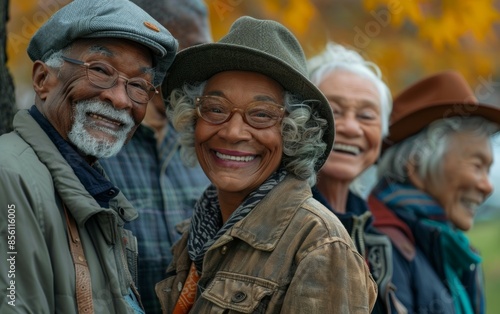 Fototapeta premium Group of happy seniors in an urban park environment.