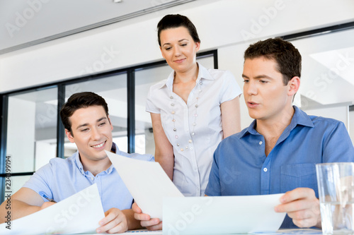 © Sergey Nivens, Fototapeta premium Group of happy young business people in a meeting