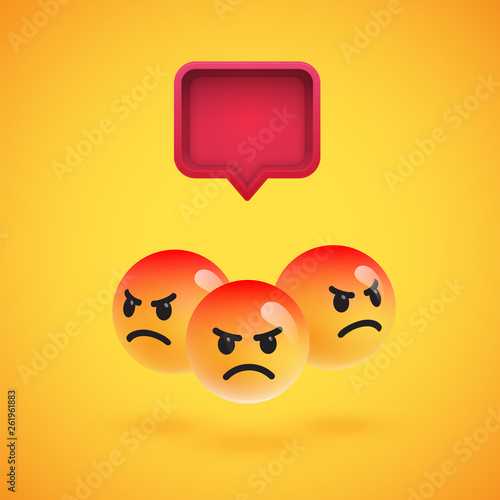 © Sebestyen Balint, Fototapeta premium Group of high detailed yellow emoticons with a 3D speech bubble, vector illustration