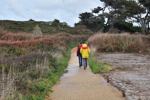 Obraz premium Group of hikers on a path in Brittany. France