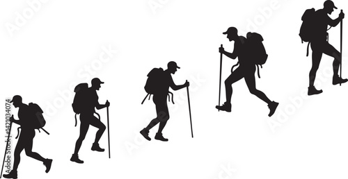 © Zalema, Obraz premium Group of Hikers Silhouette