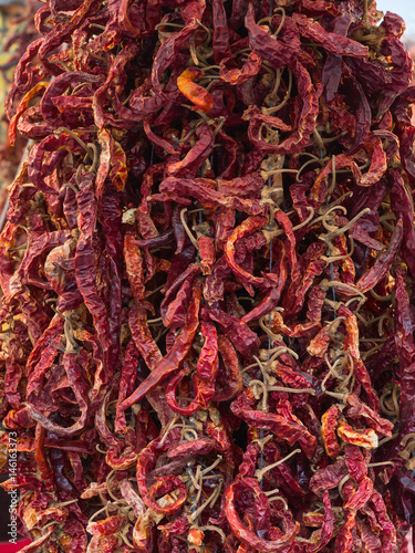 Fototapeta premium Group of hundreds dry red chili pepper