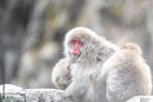 Obraz premium group of japanese macaque (snow monkey) cuddling portrait
