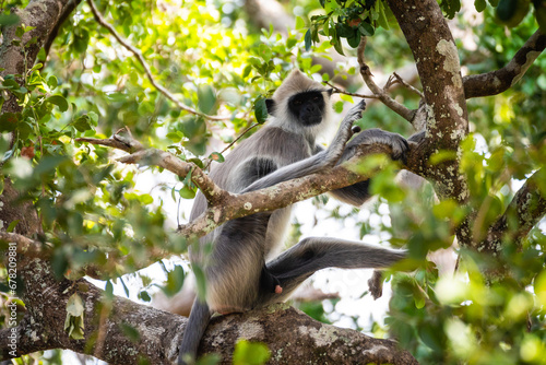 Fototapeta premium group of langur monkeys up on a tree