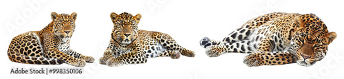 Obraz premium Group of Leopards in Relaxed Poses Isolated on Transparent Background