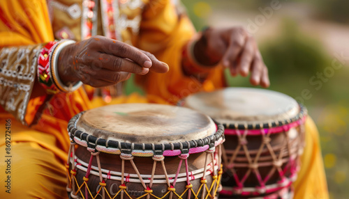 © pisan, Fototapeta premium Group of Men Playing Traditional Instruments Celebrating Holi, An Exuberant Musical Celebration with Traditional Instruments and Joyful Festivities, Holi 2023 Festival Highlights