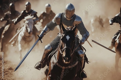 © Alla, Fototapeta premium Group of men riding horses