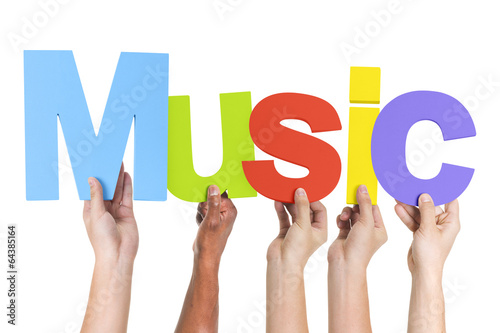 © Rawpixel.com, Fototapeta premium Group of Multiethnic Hands Holding Word Music