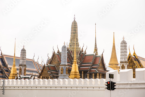 Naklejka premium group of ornate spires in national palace in center of Bangkok Thailand