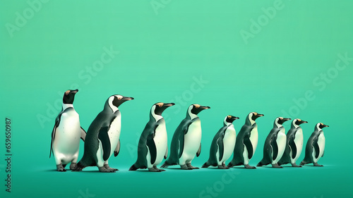 © JKLoma, Obraz premium group of Penguin full body side view, isolated on green background,