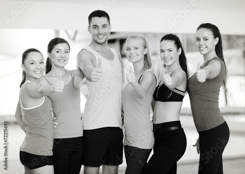 © Syda Productions, Naklejka premium group of people in the gym showing thumbs up