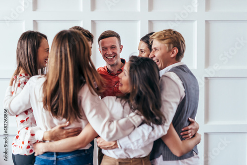 Fototapeta premium Group of people standing in circle in personal growth training