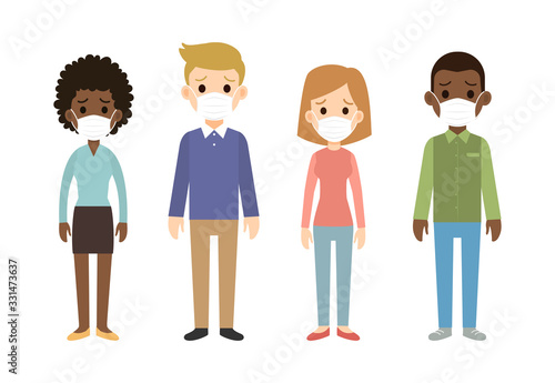© angyee, Fototapeta premium Group of people wearing protective face masks - Vector illustration