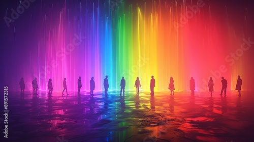 © Saima, Obraz premium Group of people with arms and hands raised towards a painted hearts. Watercolour painting