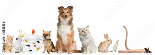 © Eric Isselée, Obraz premium Group of pets sitting in front of white background