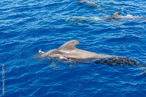 Obraz premium Group of pilot whales in atlantic ocean tenerife canary islands whale