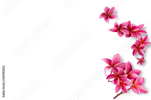 Naklejka premium Group of pink flowers (Frangipani,Plumeria) bloom isolated on white background.