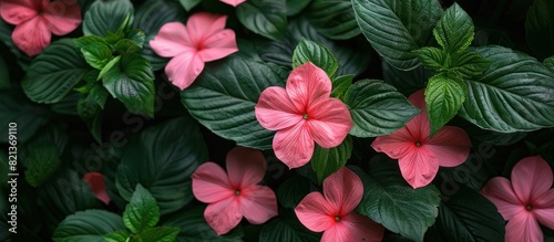 © FryArt, Fototapeta premium Group of pink flowers with green leaves