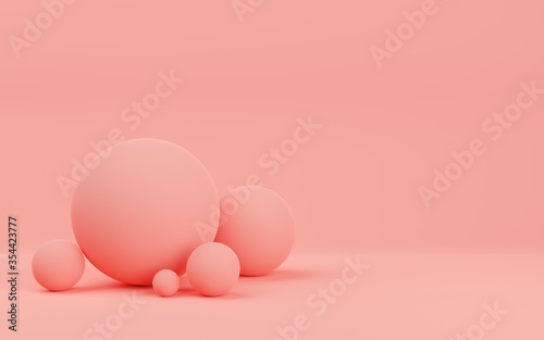 Fototapeta premium Group of pink geometric ball sphere primitives on pink background with copy space, modern minimal concept template