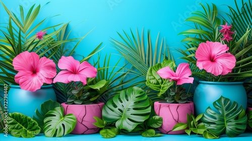 © DesignVectX, Obraz premium Group of Potted Plants With Pink Flowers