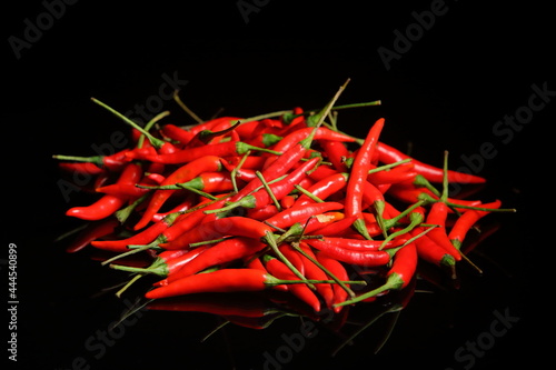 © Apichart, Fototapeta premium Group of Red hot chili peppers put on dark background