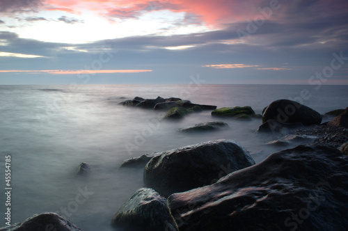© geckolo, Obraz premium Group of rocks in the water with colorful sky