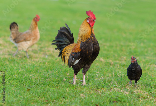 © Krakenimages.com, Fototapeta premium Group Of Rooster On The Field