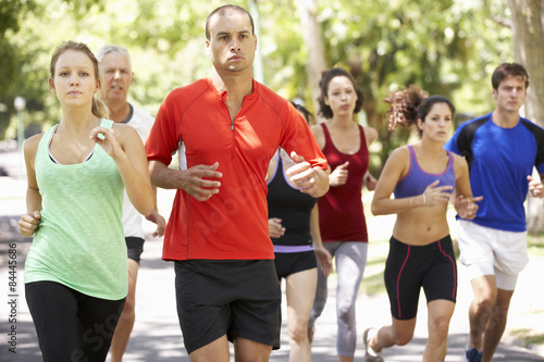 Obraz premium Group Of Runners Jogging Through Park