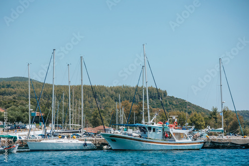 © Alexandr, Naklejka premium Group of sailboats are docked at a marina
