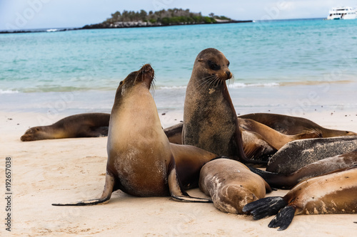 Obraz premium Group of sea lions on the beaches of Galapagos