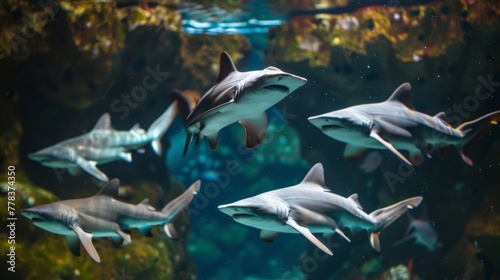 Fototapeta premium Group of Sharks Swimming in an Aquarium