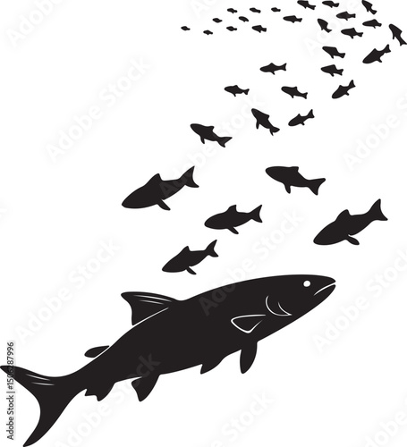 Fototapeta premium Group of Small Fish Swimming in Harmony Silhouette