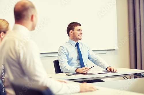 Obraz premium group of smiling businesspeople meeting in office